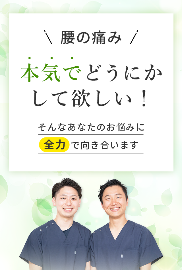 もし、あなたに上記のようなお悩みがあり「どうにか、この痛みから解放されたい」と少しでも思う方がいれば当院にご相談ください。私は必ずあなたの力になってみせます。